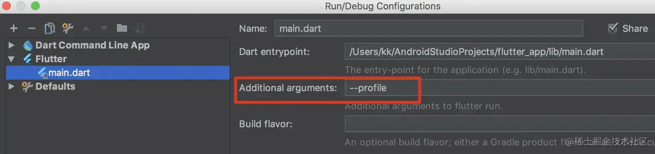 或者,直接运行 Run -> Flutter Run 'main.dart' in Profile Mode