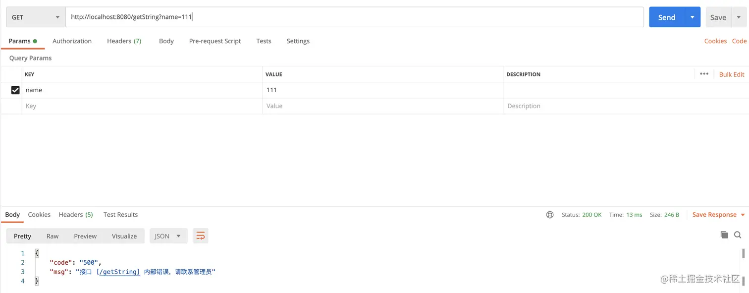 result.setCode(ResultCode.INTERNAL_SERVER_ERROR).setMsg("接口 [" + request.getRequestURI() + "] 内部错误,请联系管理员");