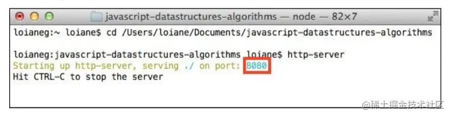 这行代码会安装JavaScript的http服务器。如果想启动服务器,运行示例代码,可以在终端中把文件夹转换为有源代码的文件夹,并在终端中输入http-server ,如下图所示: