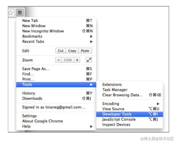 你也可以使用谷歌浏览器。谷歌浏览器已经安装了开发者工具。按照下图,即可打开它了: