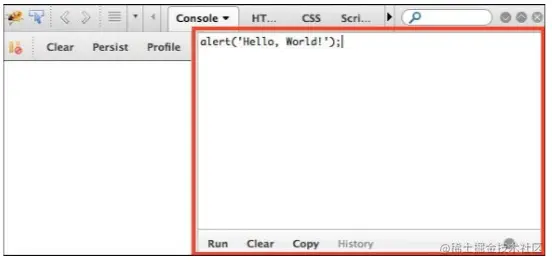 当你打开Firebug,你会看到Console面板,然后就可以在命令行写代码了: