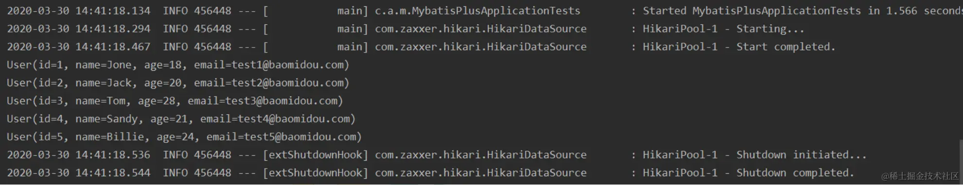 (1, 'Jone', 18, 'test1@baomidou.com'),