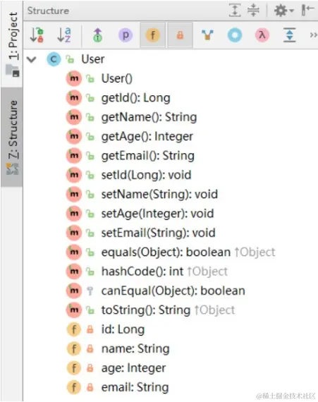 创建包 entity 编写实体类 `User.java(此处使用了 [Lombok](https://www.projectlombok.org/) 简化代码)`