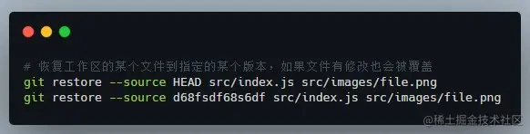 注意:这里的默认参数是 --worktree(就是工作区)