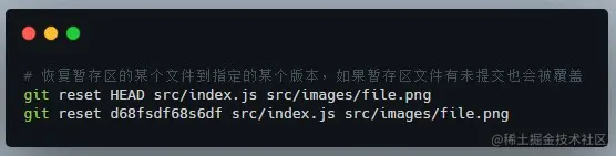 暂存区单个文件恢复到某个提交版本