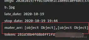 我的mater_arr数据打印出来是一个正常的数组,可是传过去的确实是一个[object Object]这样的字符串,我找了很久的文章,得到一个解决方案,就是使用JSON序列化,即使用JSON.stringify来把对象解析成字符串。