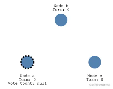 Candidate 状态:候选人,可以被选做Leader。我们用实心圆+虚线边框表示。