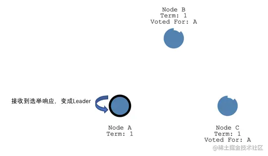 Candidate 节点收到大部分节点的选举响应之后,会变成Leader 节点。