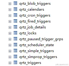 这里使用mysql进行存储,在quartz的源码包中找到文件tables_mysql_innodb.sql,然后在客户端进行运行sql文件。如果嫌源码包不好下载的话,我已经将sql文件上传至GitHub了,可以直接访问github拉去表结构,数据表如下: