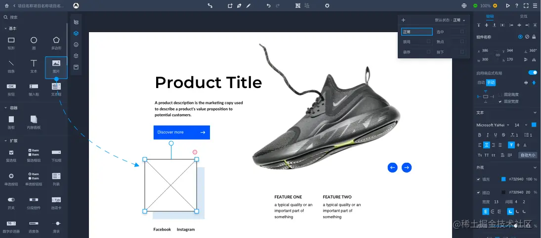 这里笔者推荐摹客设计平台的在线设计功能,拥有海量组件和图标,只需要拖拽便可快速制作界面,并且支持多人协同工作,能够极大的提高团队沟通效率,最小成本的试错并找到适合的设计方案。