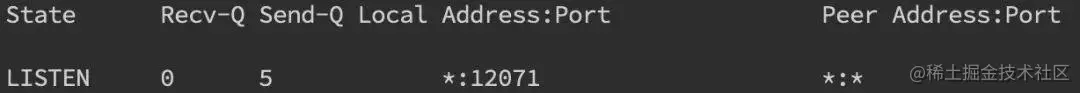上面看到Send-Q 表示第三列的listen端口上的全连接队列最大为5,第一列Recv-Q为全连接队列当前使用了多少。