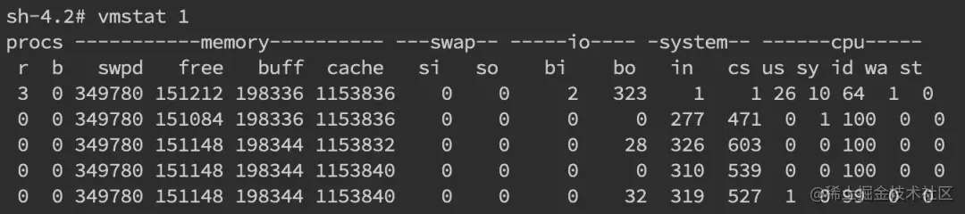 针对频繁上下文问题,我们可以使用vmstat命令来进行查看