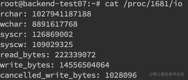 找到pid之后就可以看这个进程具体的读写情况cat /proc/pid/io