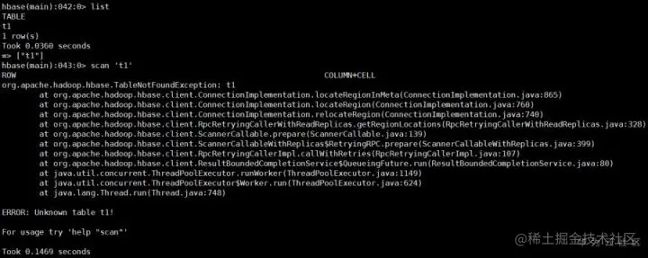 例如启动后发现,hbase shell能list出数据,但是表无法put或者scan,这时候hbase:meta表里的t1表记录其实是不正确的