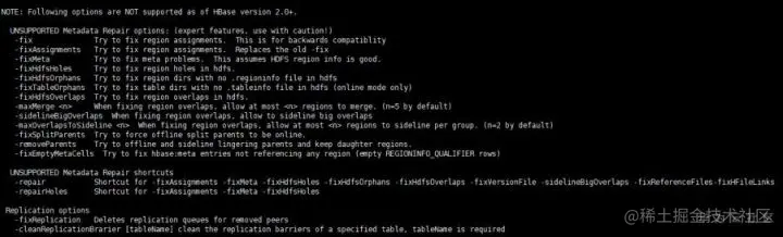 在HBase 2.X的客户端执行hbase hbck时,常用的fixMeta命令已经不再支持。