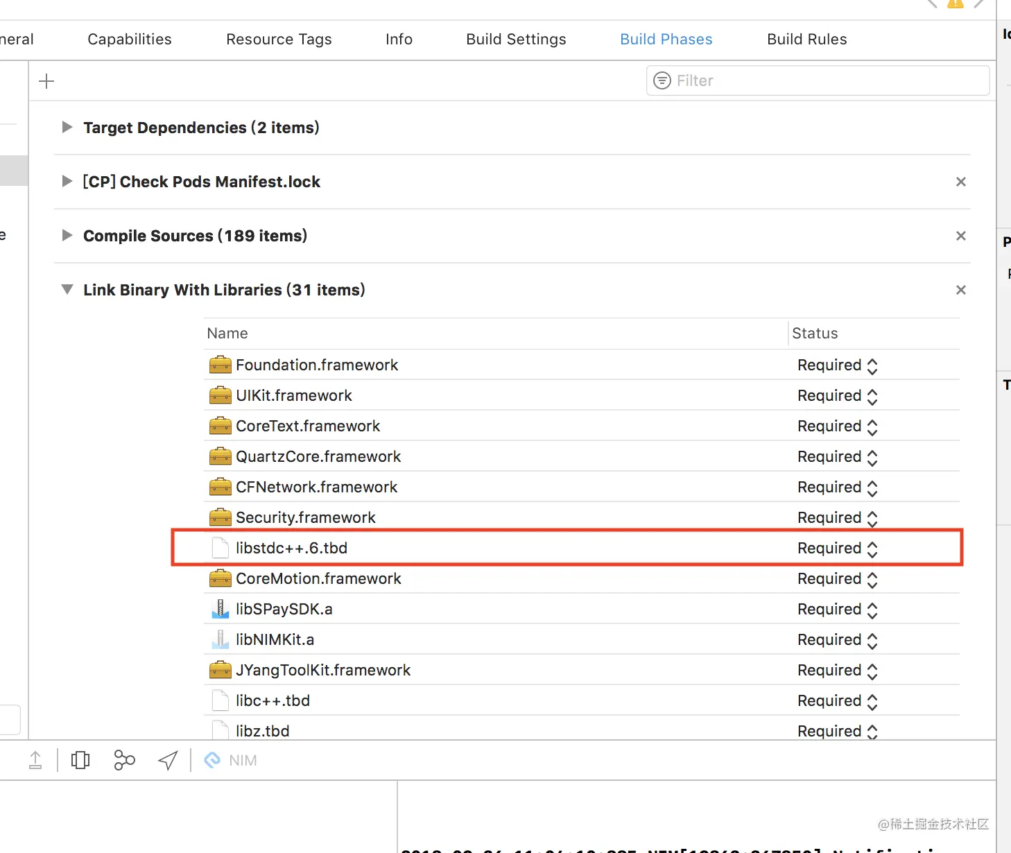 - 真机:进入目录Contents/Developer/Platforms/iPhoneOS.platform/Developer/SDKs/iPhoneOS.sdk/usr/lib,把里面的libstdc++.6.0.9.tbd拷贝到Xcode10的相同的目录里,然后右击制作替身,命名为libstdc++.6.tbd。clear然后重启Xcode。