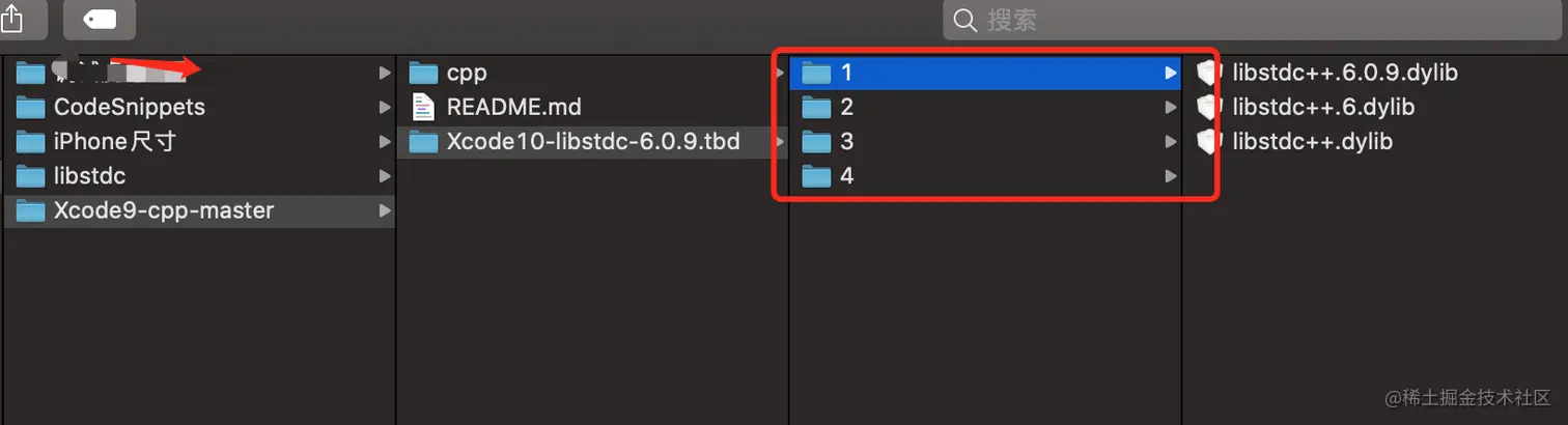 libstdc++6.0.9.tbd库 需要放到4个目录路径 其中1 要区分Xcode版本 步骤3、4 和最顶的步骤一样1) Xcode10的路径