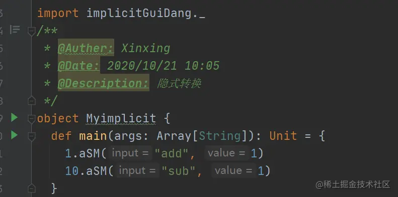 建议单独做一个隐式转换切面,所有的隐式转换都放在类中,如下所有隐式转换都在implicitGuiDang中。哪里需要用到时,请在需要使用的类中导入implicitGuiDang即可