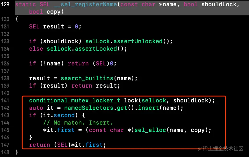我们发现SortBySELAddress是跟name相关联的,在fixupMethodList方法里,只有sel_registerNameNoLock是跟name相关联的。下面我们看下sel_registerNameNoLock方法实现