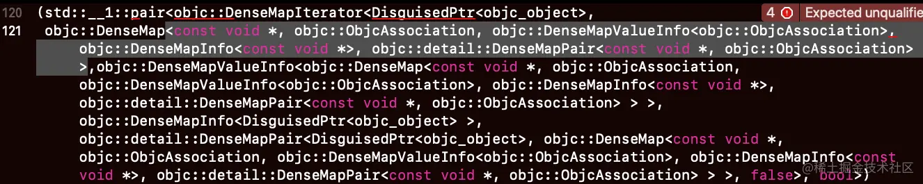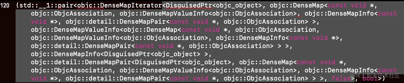 我们通过<和>对应关系,将这个类型分开,其中122-130行是一个参数,第二个参数是个bool类型。我们回到_object_set_associative_reference方法