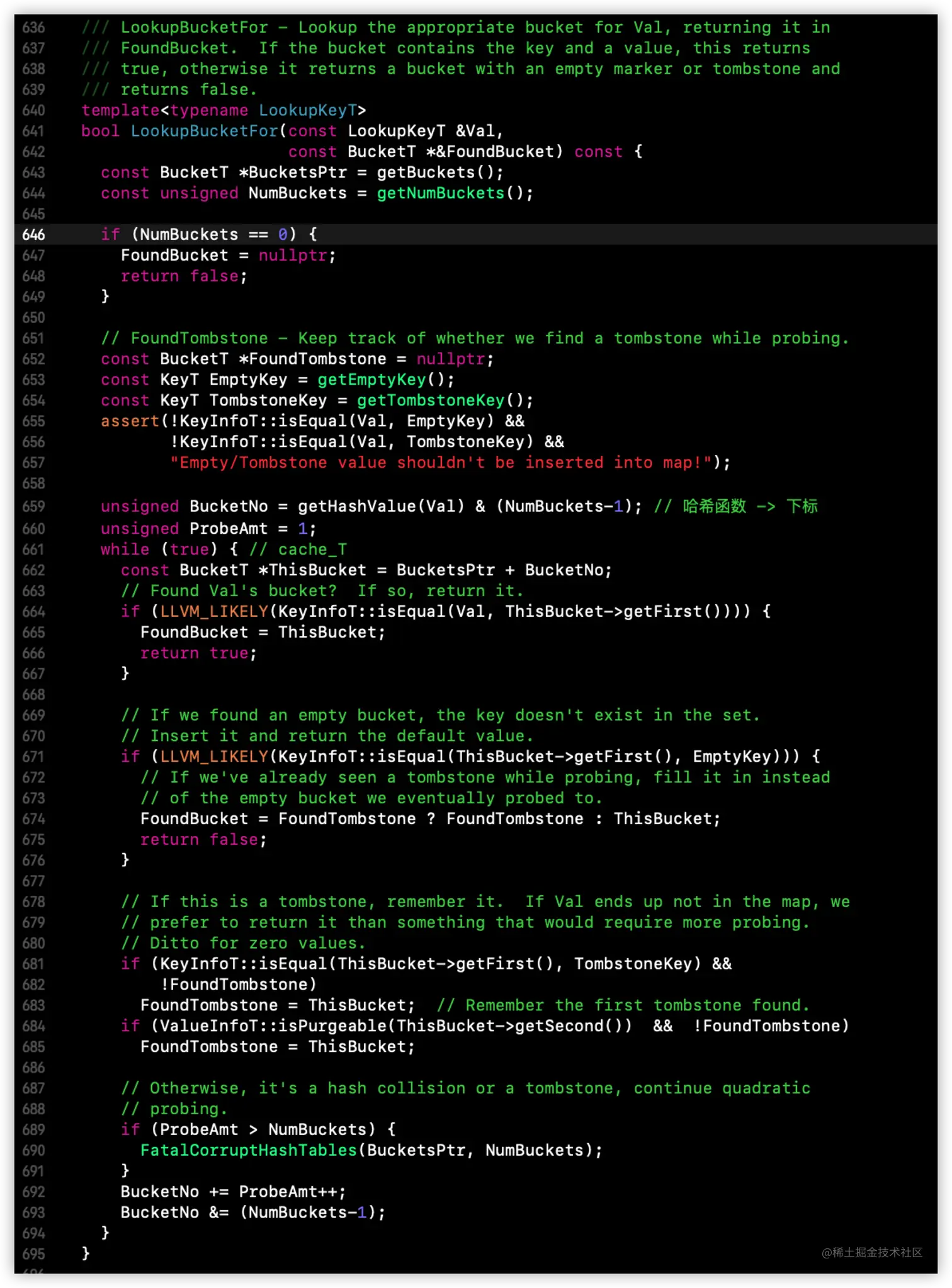 下面我们再来看看try_emplace查找TheBucket怎么找的,我们看下LookupBucketFor实现