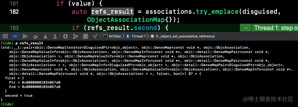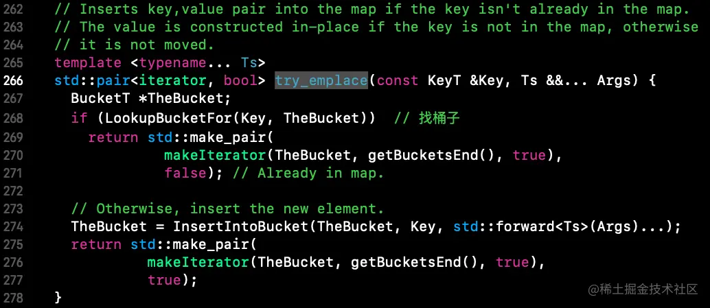 判断refs_result的第二个参数,就是bool类型,判断就是如果是第一次进来就会走185行方法。我们不管refs_result第一个一大堆的东西,我们只管bool值,下面我们看下try_emplace方法实现