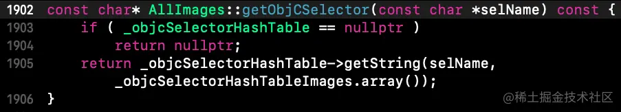 关键信息就是_dyld_get_objc_selector,这个方法就是在dyld源码里了,我们去dyld源码看看