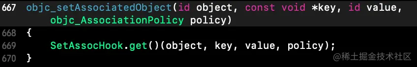 发现确实走到这个方法里了,下面我们再看下_object_set_associative_reference方法实现