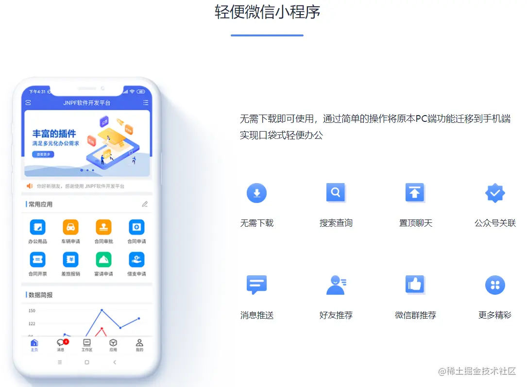 以上这几个问题应该是大多数公司企业自主研发IM软件的主要原因吧。其实,除了那些大公司大企业,广大的中小企业也是不愿意把自己公司内部的沟通信息或资料数据全部放在钉钉或企业微信这些平台上,尤其是一些敏感行业,金融、食品、物流、贸易公司,以及设计行业等。但他们自己又没有腾讯阿里华为那样强大的技术开发能力,这该怎么办才好?或许可以运用时下较为热门的快速开发平台技术,可以十分高效快速、省时省力的解决了这个难题!