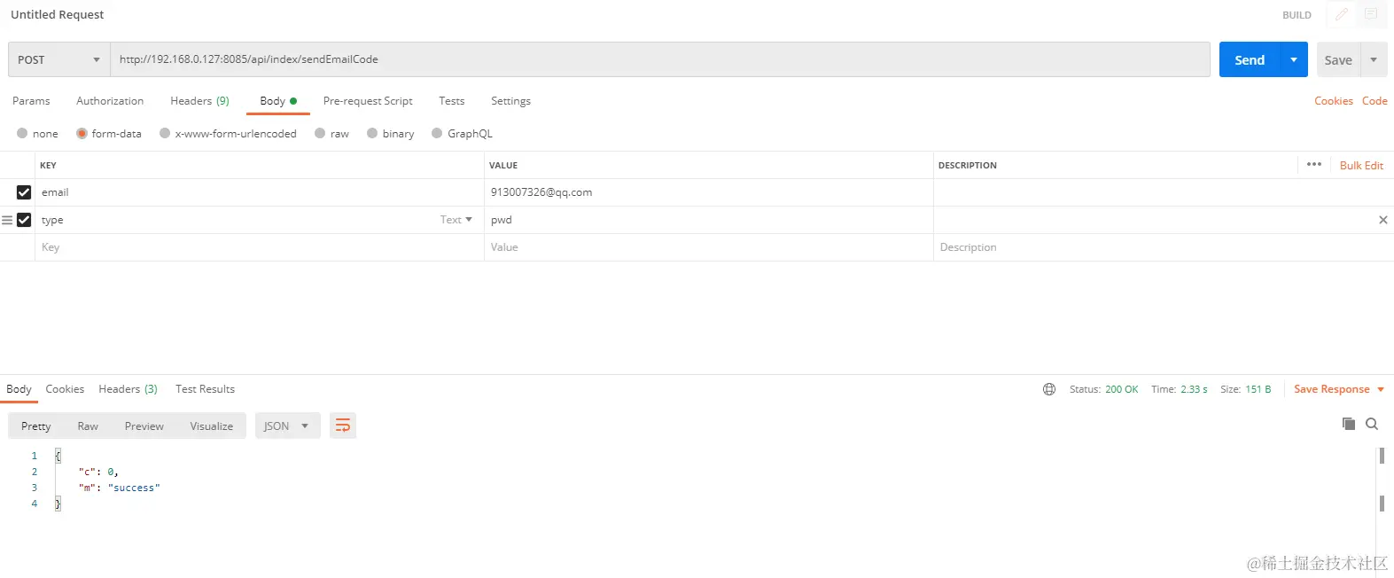 email是收件人邮箱,type表示是注册还是忘记密码,pwd是忘记密码