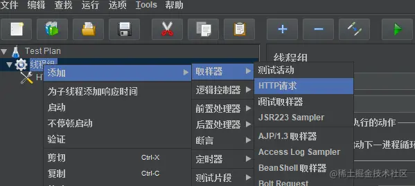 点击菜单栏的绿色 三角形按钮运行Jmeter