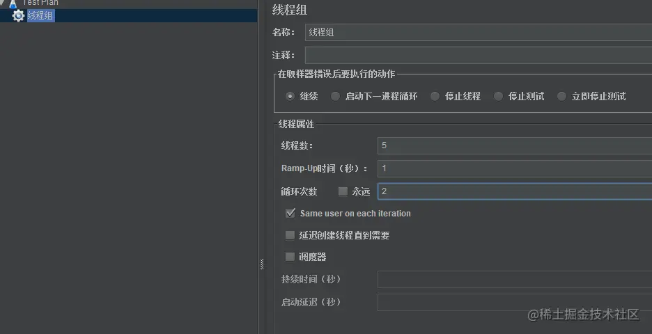 选择线程数量,和循环次数;知识追寻者这边选择值分别为 5和2,即一共发送10个请求;
