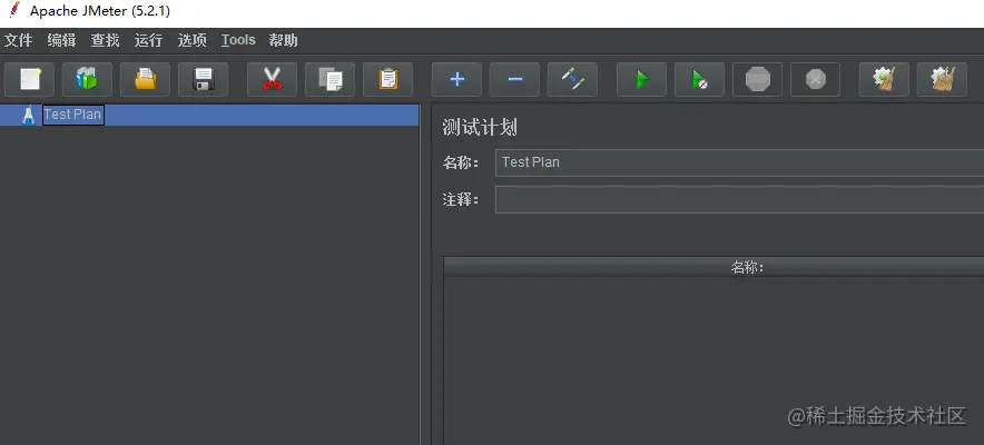 双击 jmeterw.cmd 运行jmeter 界面如下