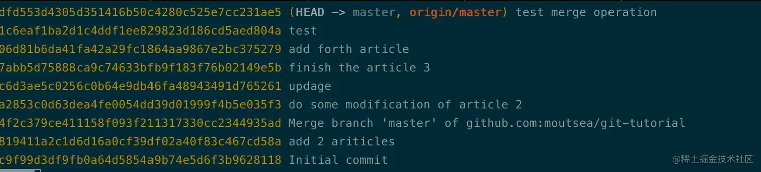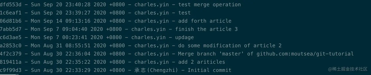 比如当我在存放git文章的repo下运行git log,就可以查看到之前的提交记录: