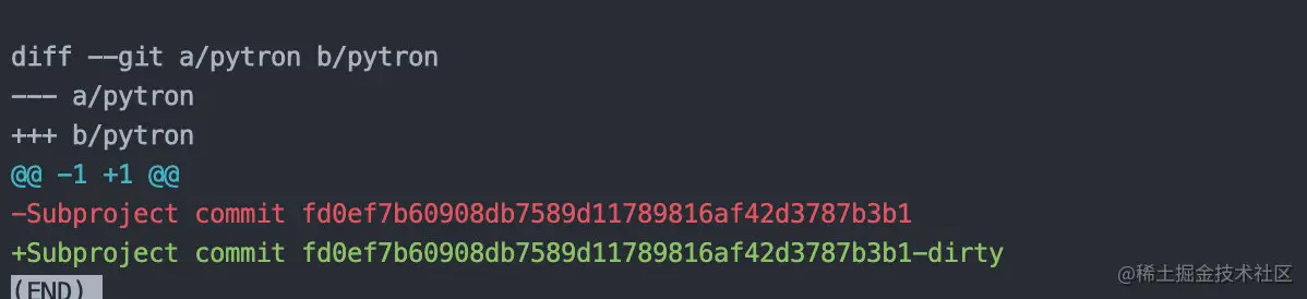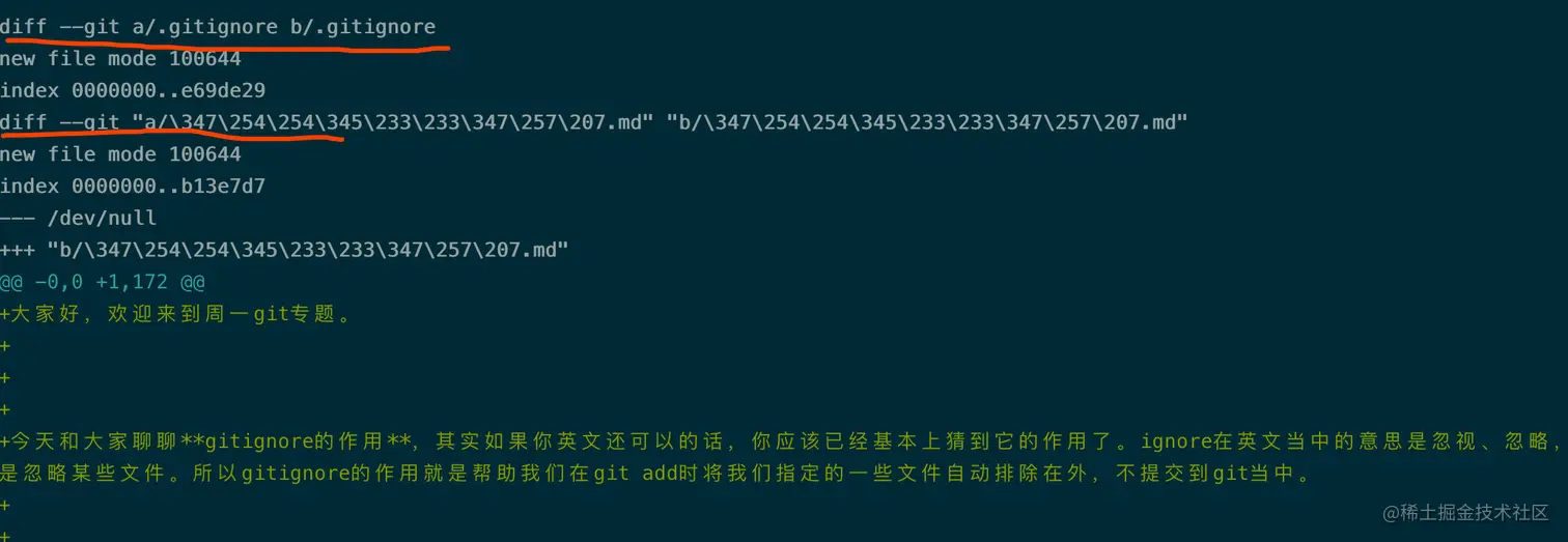 比如我随便找了个repo运行了一下git diff,后面没有加上任何参数,我从结果当中截取了一个片段如下: