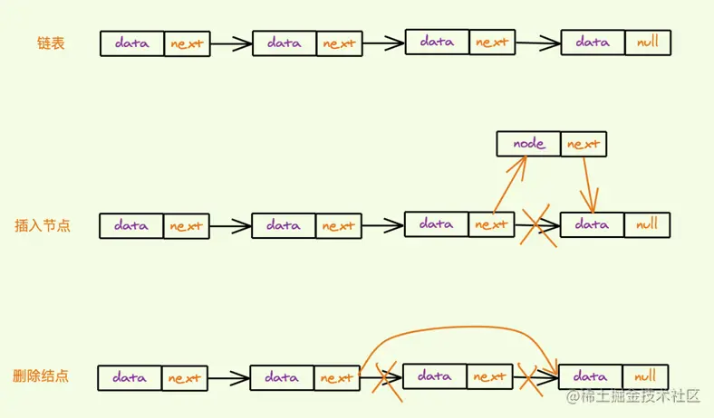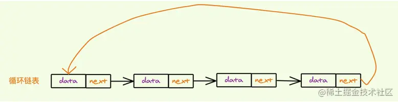 链表通过指针将一组零散的内存块串联在一起,这里的内存块称为链表的结点。为了将这些节点给串起来,每个链表的结点除了存储数据之外,还会记录下一个结点的指针(即下一个结点的地址),这个指针称为:后继指针