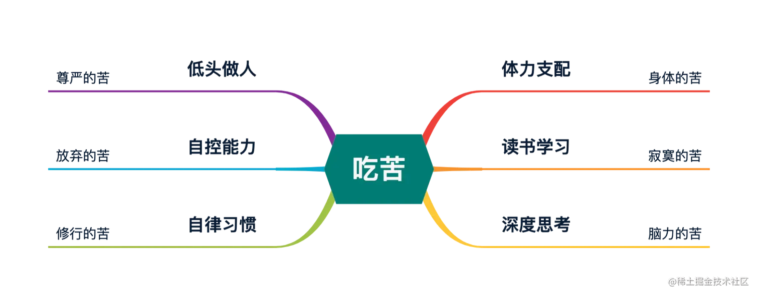 从前的能吃苦大多指的体力劳动的苦,但现在的能吃苦已经包括太多维度,包括:读书学习&寂寞的苦、深度思考&脑力的苦、自律习惯&修行的苦、自控能力&放弃的苦、低头做人&尊严的苦。
