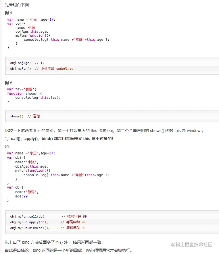 JavaScript 中 call()、apply()、bind() 的用法 livaha 2020-10-22 243 阅读1分钟 其实是一个很简单的东西,认真看十分钟就从一脸懵B 到完全 理解! 原文地址:www.cnblogs.com/Shd-Study/p… 或 www.runoob.com/w3cnote/js-…