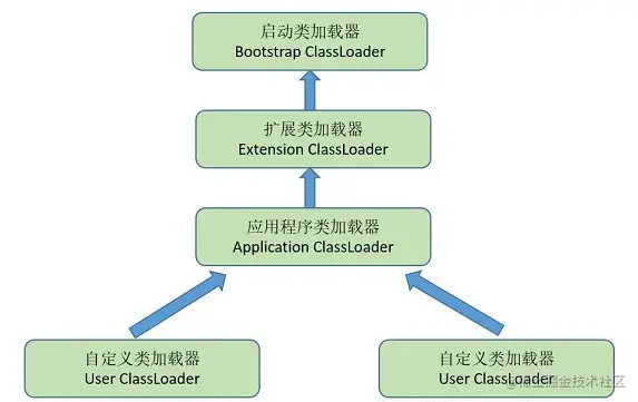 它们之间的层次关系被称为类加载器的双亲委派模型。该模型要求除了顶层的启动类加载器外,其余的类加载器都应该有自己的父类加载器,而这种父子关系一般通过组合(Composition)关系来实现,而不是通过继承(Inheritance)。
