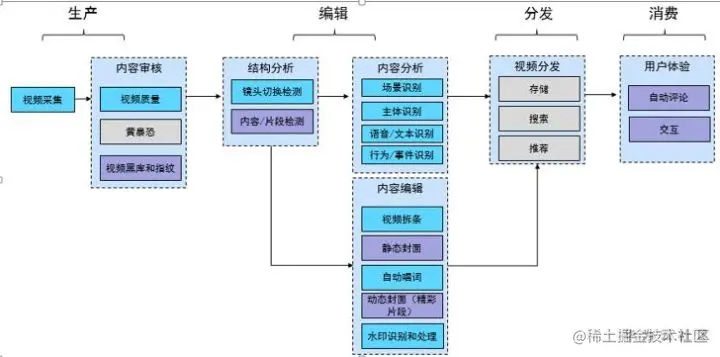 人工智能正在进入以标准化、自动化、模块化为特点的工业大生产阶段。AI会将人类社会带入智能时代。本文针对视频从生产、编辑、分发到消费的整个过程如何实现智能化,进行了技术分析,希望能为对AI感兴趣的小伙伴们指点迷津,也为一直苦于传统运营模式下的你打开局面。