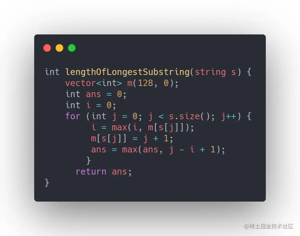 行,差不多时间了,写个简单代码吧,实现一个无重复字符的最长子串