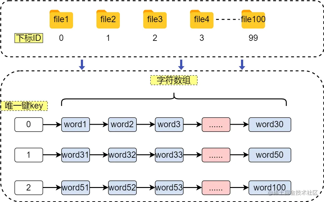 - 首先给文档编个号表示唯一表示,然后排序遍历文档