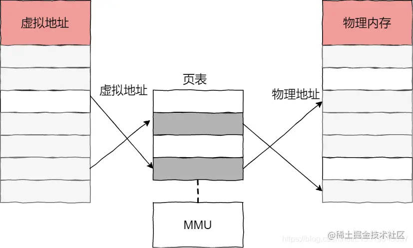 内存映射即虚拟内存地址映射到物理内存地址,完了顺利完成映射,需要给每个进程维护一张页表记录两者的关系。