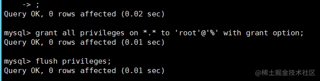 flush privileges;