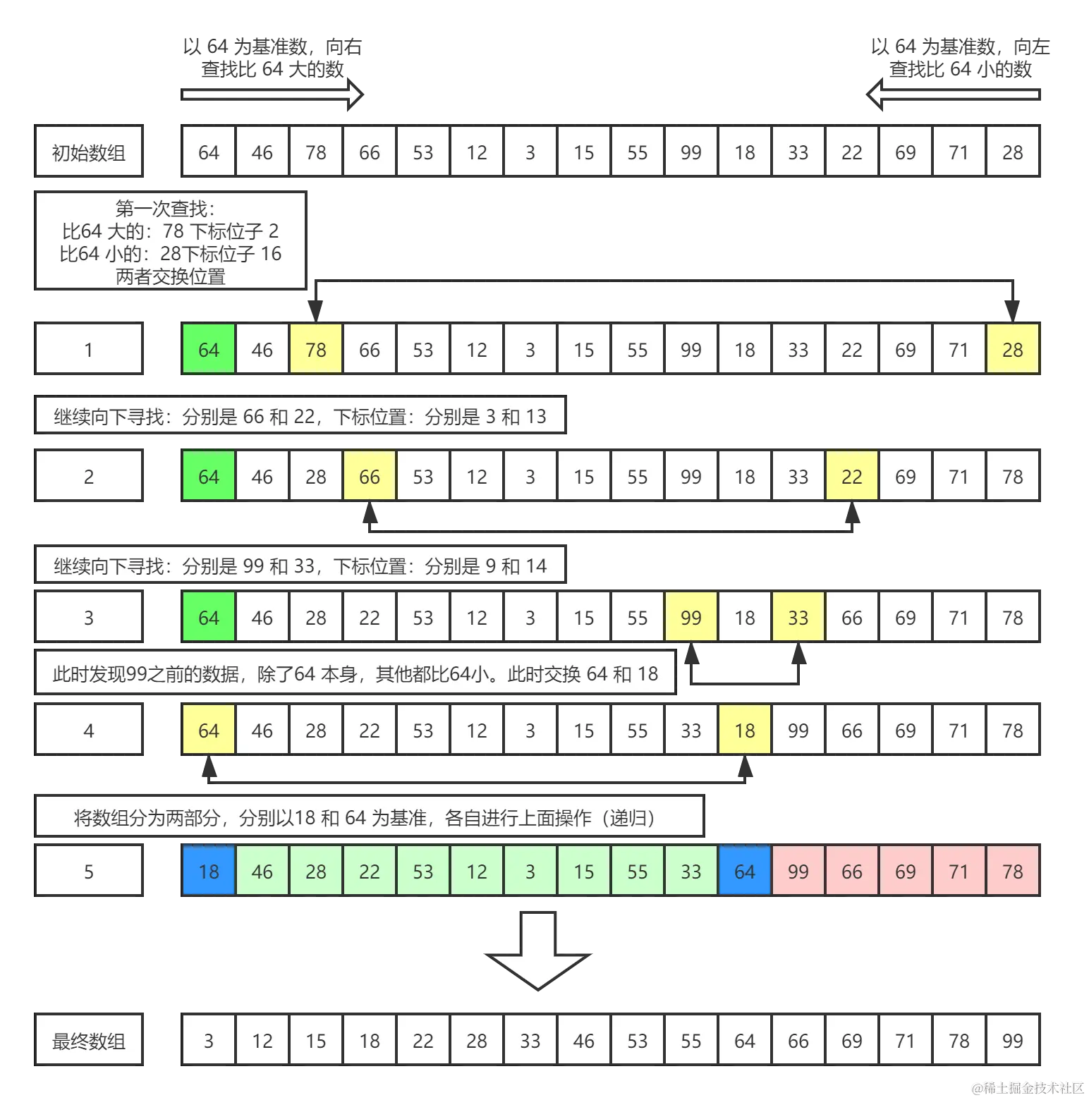 我们先通过图片看下快排到底是怎样实现的