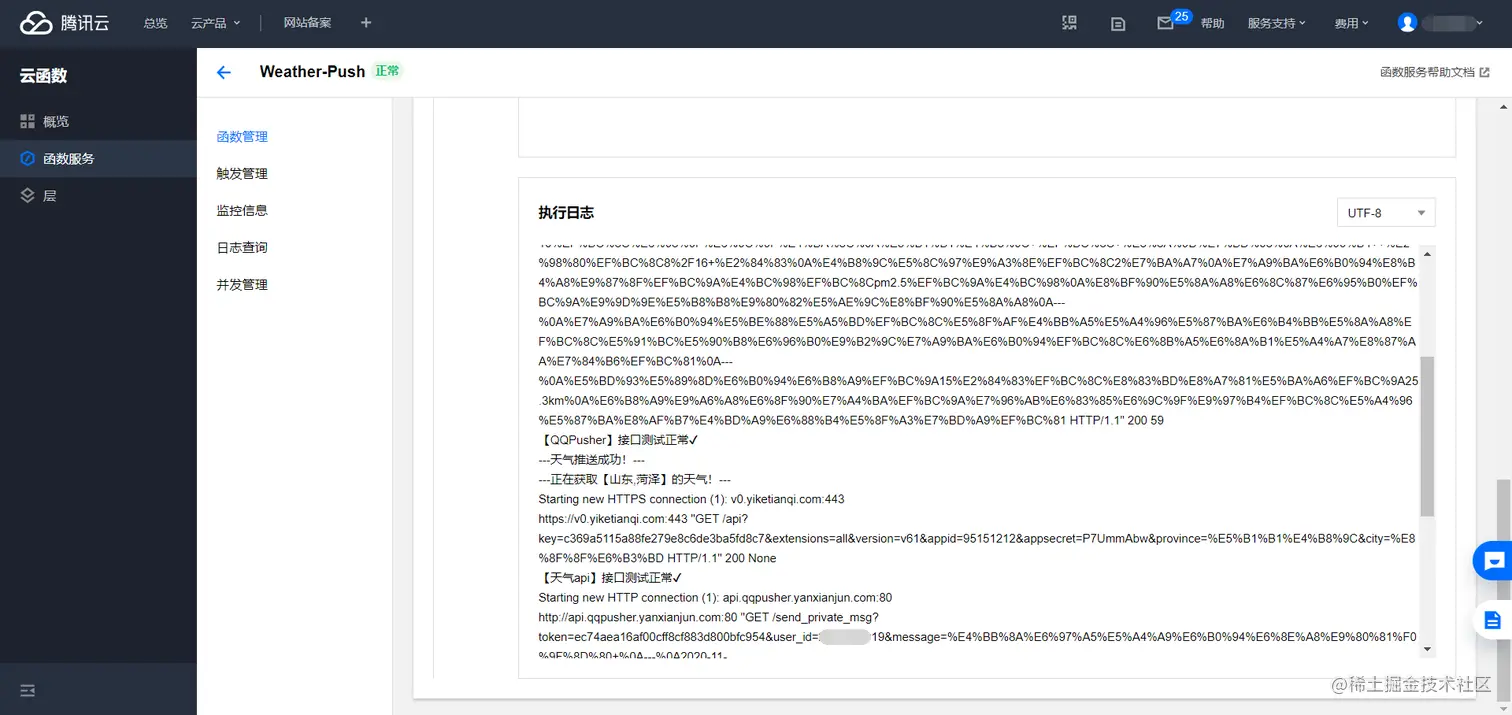 免费,腾讯云函数每月100万次免费调用额度,本项目每天只调用一次: