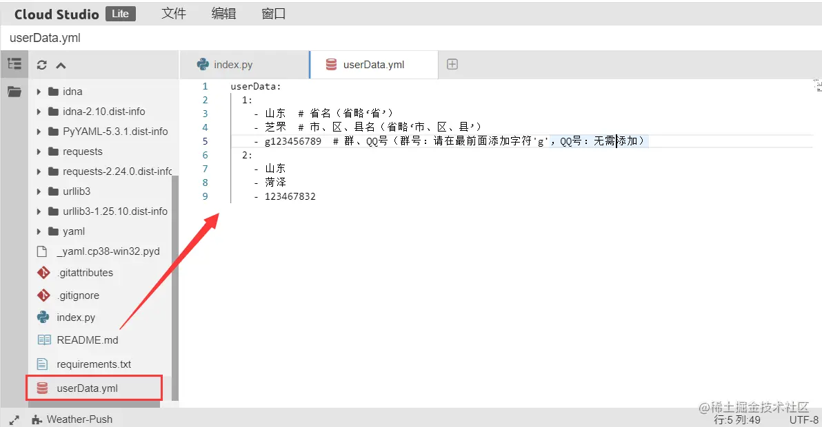 userData.yml文件,双击打开:注意:填写完成后,按下快捷键: