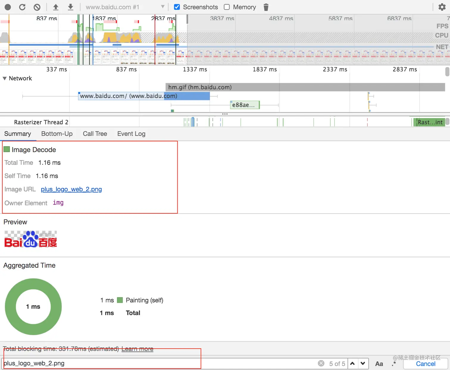 注意: 目前chrome浏览器可以看到解码时间的图片类型不包括svg和webp。