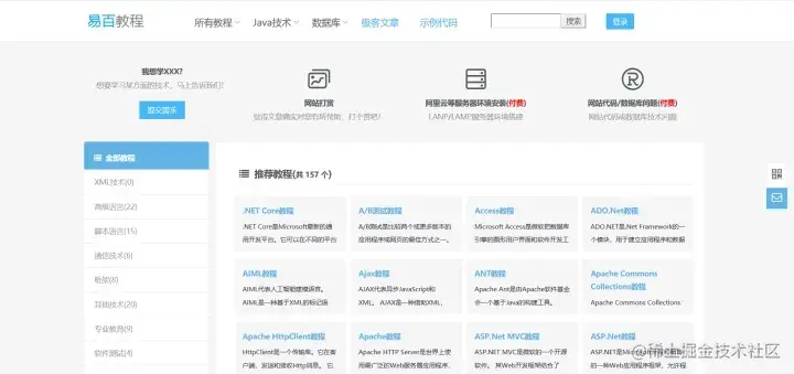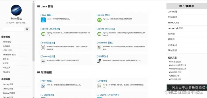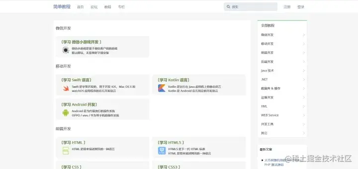 首先列出一些在线教程网站,这些在线教程网站通常都比较适合入门,可以作为开发学习路上的第一个阶梯,也可以作为工作中的在线文档。