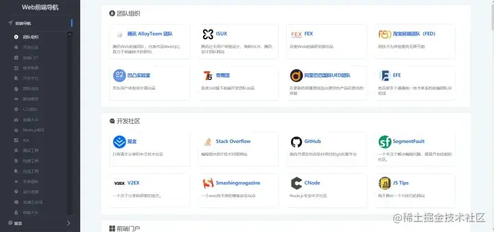 简 介:比较全的Web前端导航,包括 团队组织 、开发社区 、 前端门户、框架类库 等等网站的导航。